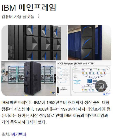 출처 https://www.ibm.com/kr-ko/think/topics/mainframe https://ko.wikipedia.org/wiki/IBM_시스템/360